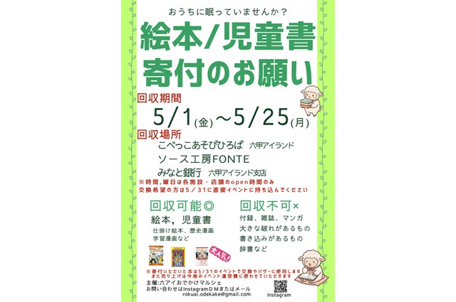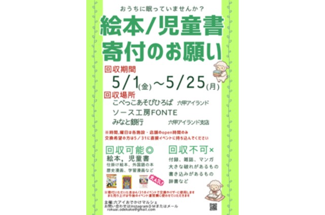 2026年04月25日(土) 神戸ファッションプラザ(神戸市東灘区)3F サン広場絵本、児童書の寄付のお願い