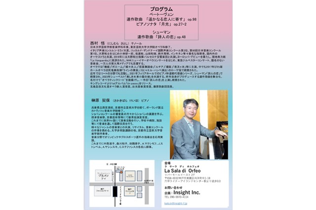 東京を拠点に活躍するテノール歌手西村悟が、シューマン「詩人の恋」を関西で初披露します